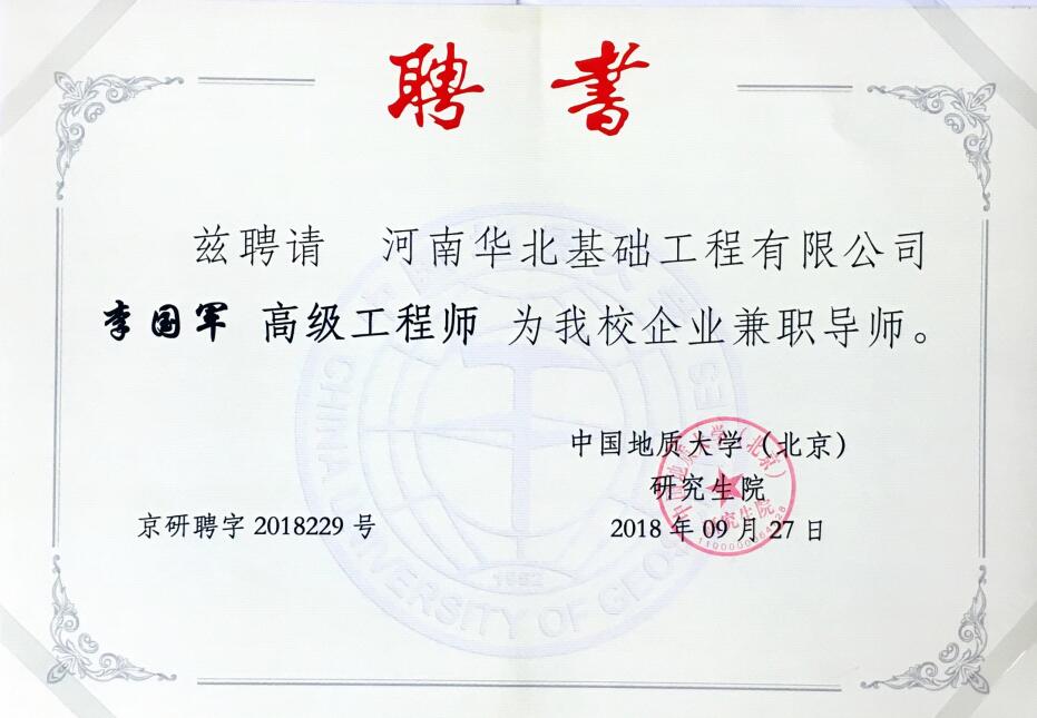 中國(guó)地質(zhì)大學(xué)(北京)研究生院聘為校外導(dǎo)師一職, 此成績(jī)